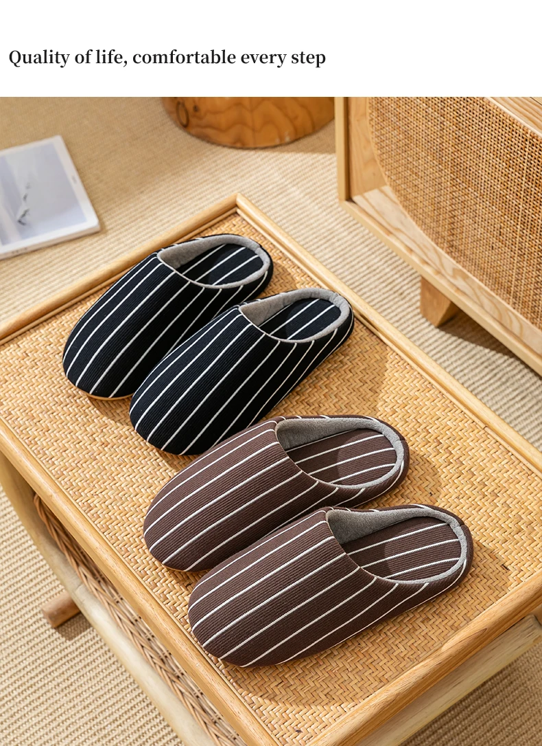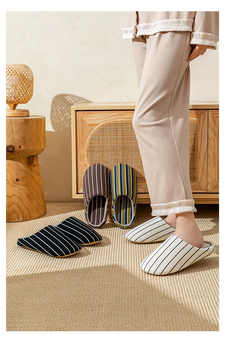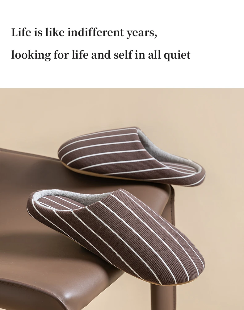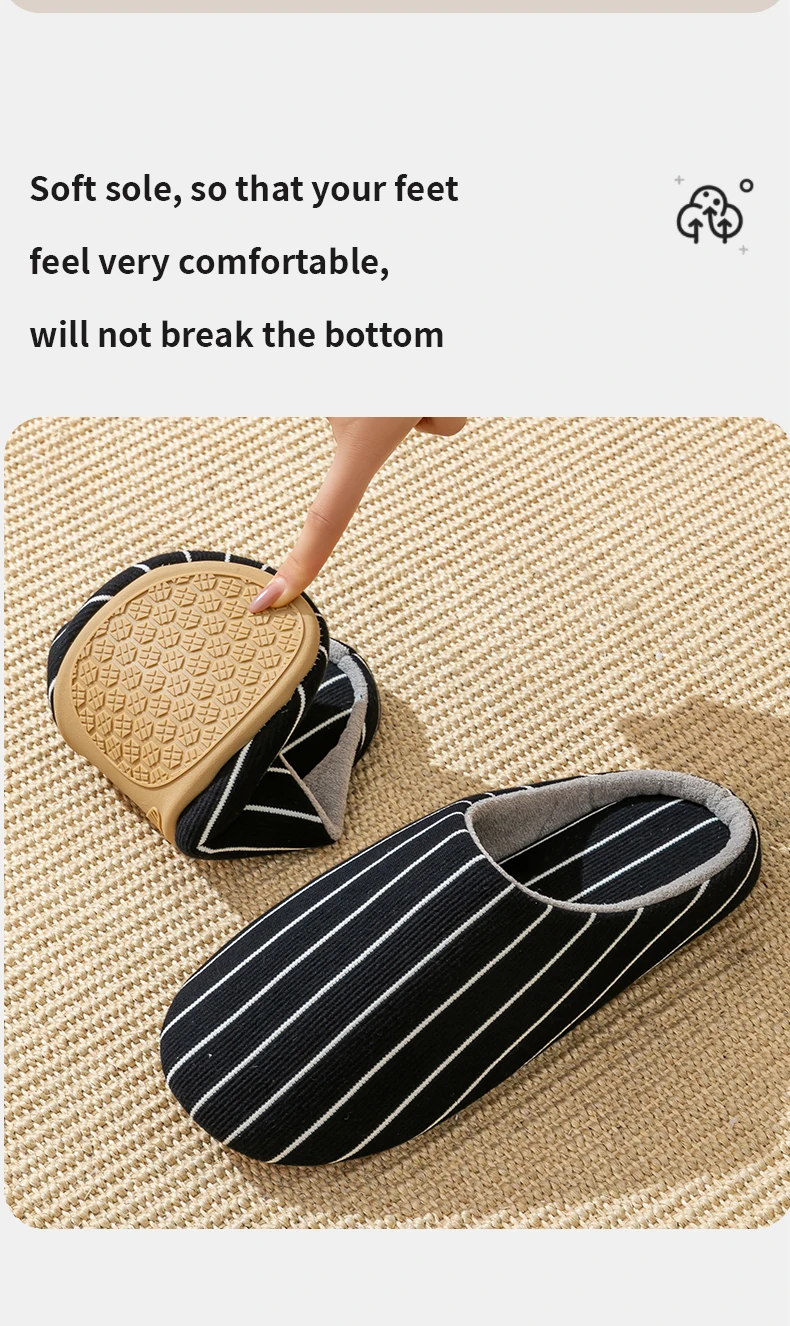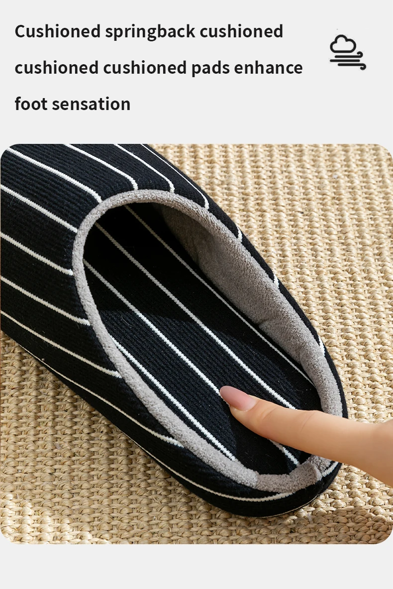 Enjoy pure relaxation with these soft, striped slippers that perfectly combine comfort and style. The lightweight and breathable material ensures a comfortable feel in any season, while the non-slip sole provides secure footing on various floor surfaces.