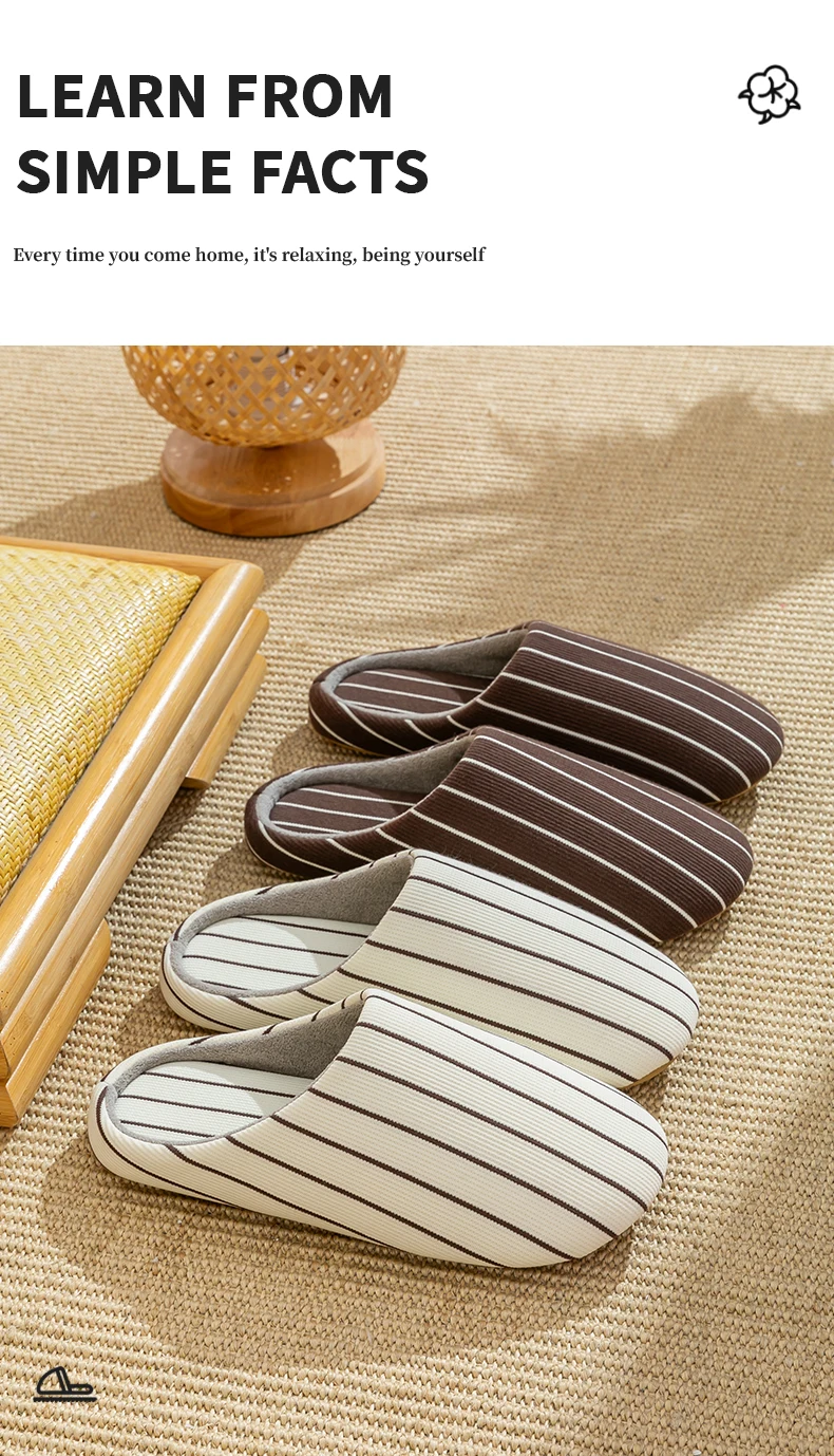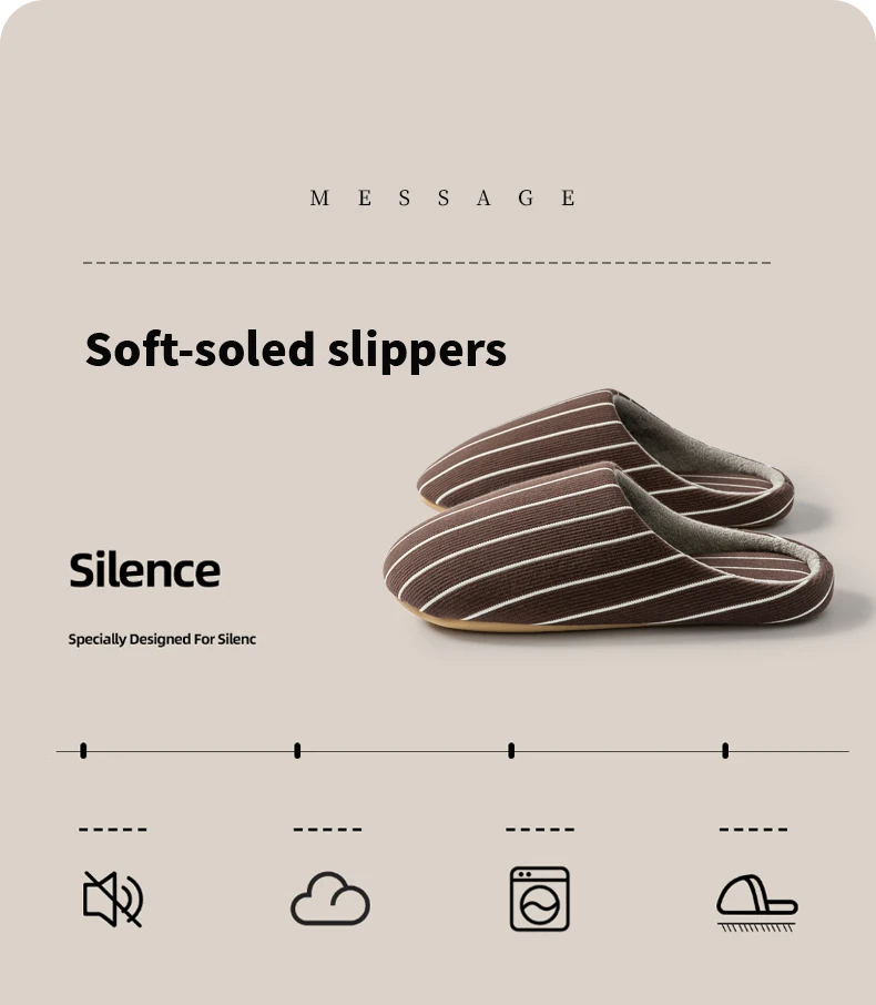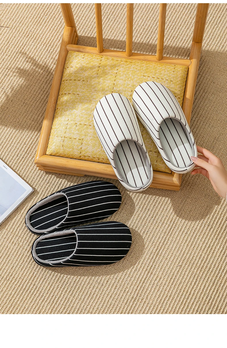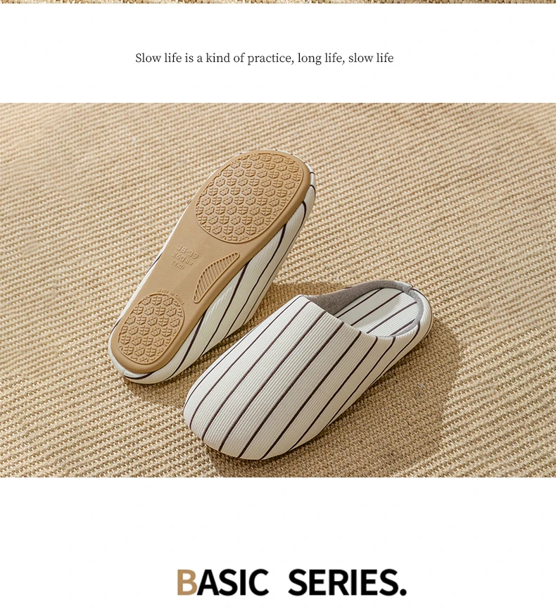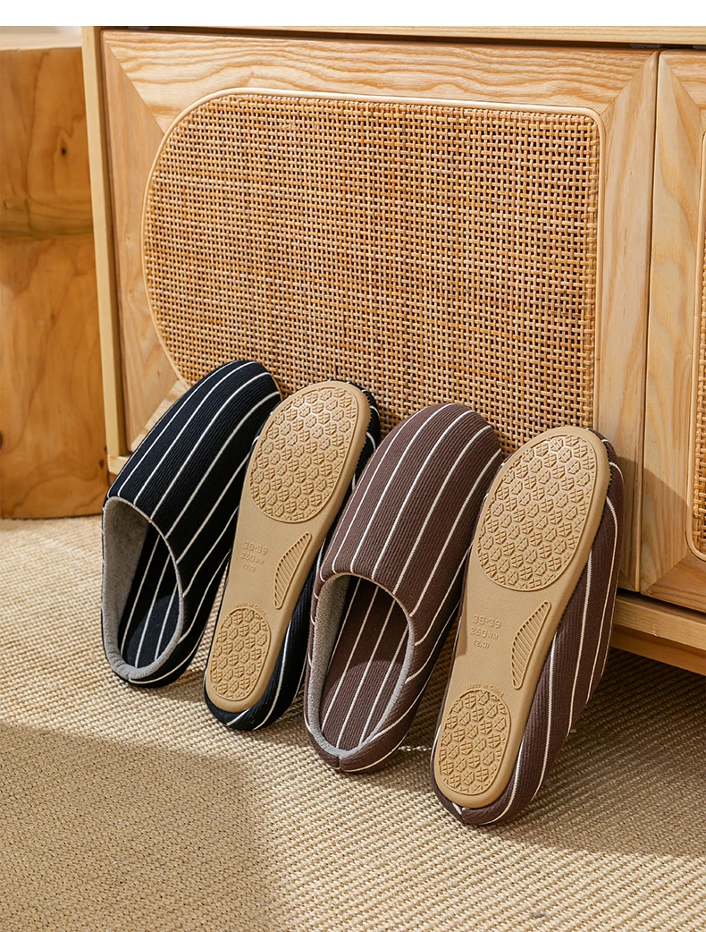 Enjoy pure relaxation with these soft, striped slippers that perfectly combine comfort and style. The lightweight and breathable material ensures a comfortable feel in any season, while the non-slip sole provides secure footing on various floor surfaces.