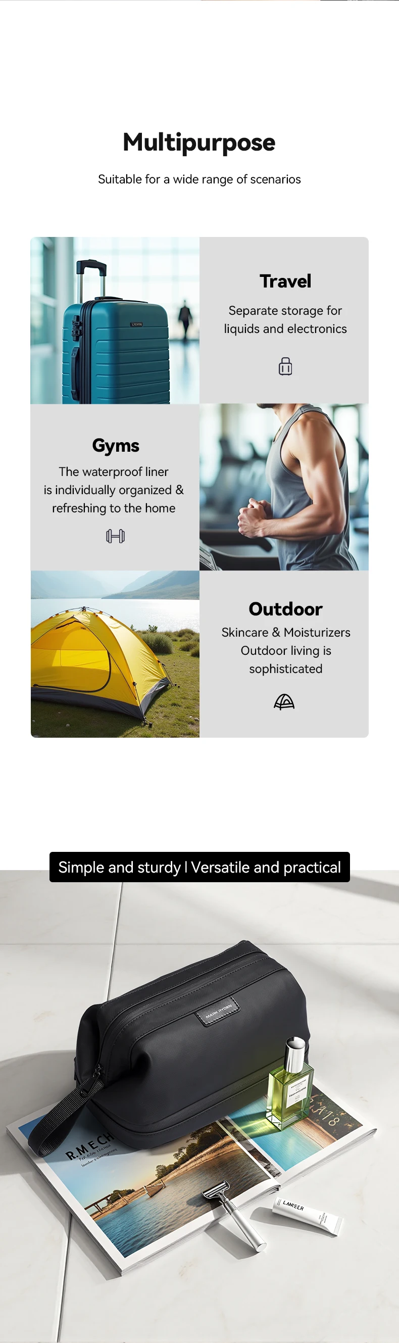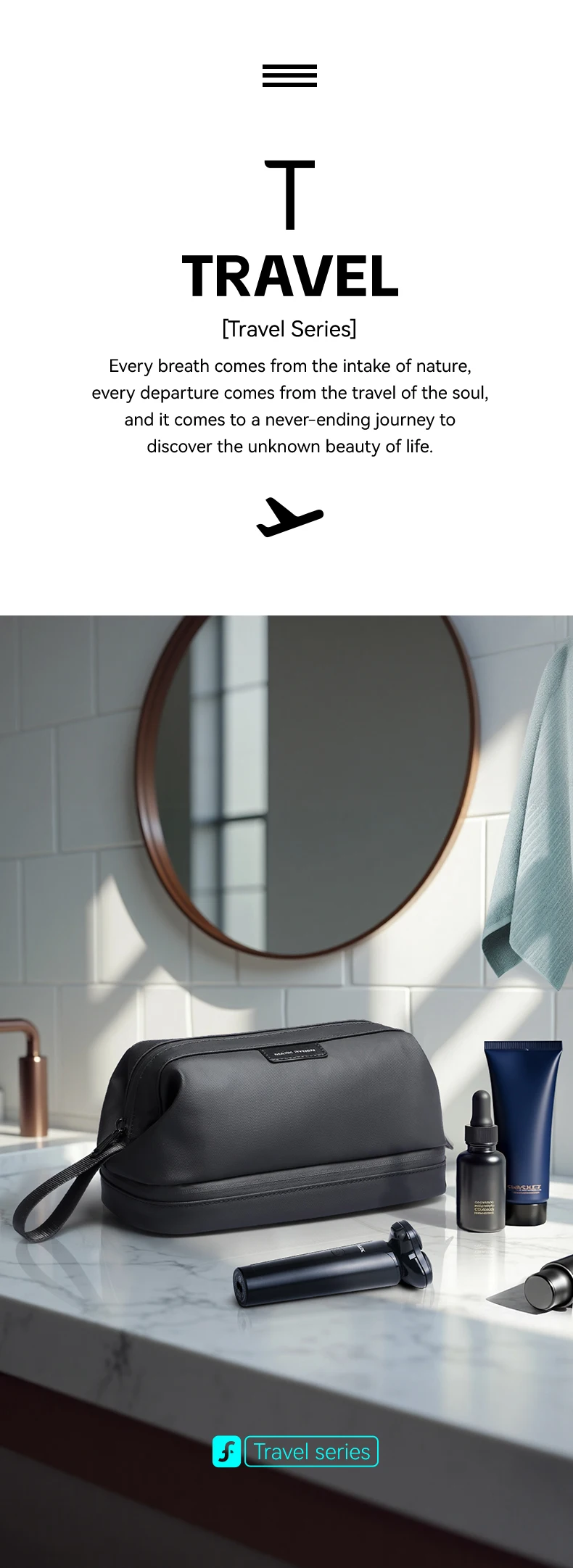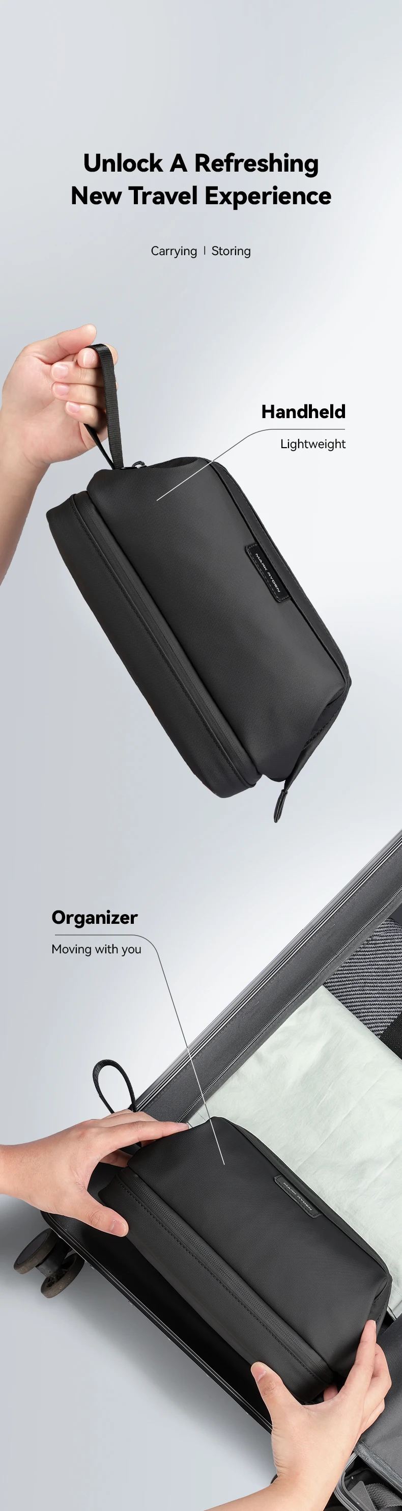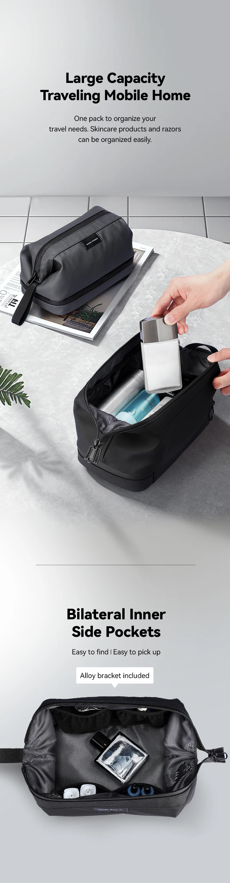 Die Travel Toiletry Bag ist die ideale Lösung für moderne Reisende, die Wert auf Ordnung, Stil und Langlebigkeit legen. Mit durchdachtem Design und hochwertigen Materialien sorgt sie dafür, dass all Ihre Pflegeartikel sicher und übersichtlich verstaut sind – egal ob im Urlaub, auf Geschäftsreise oder im Fitnessstudio.