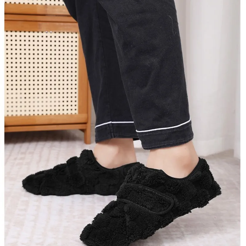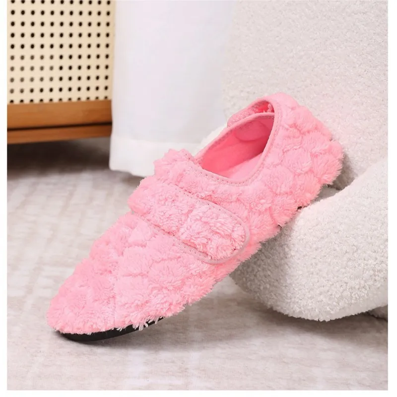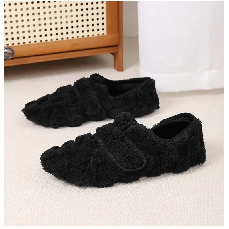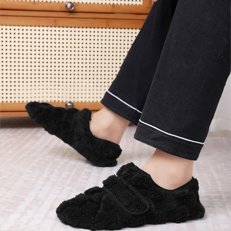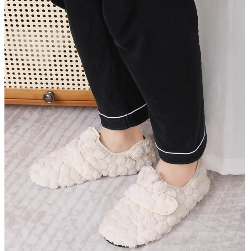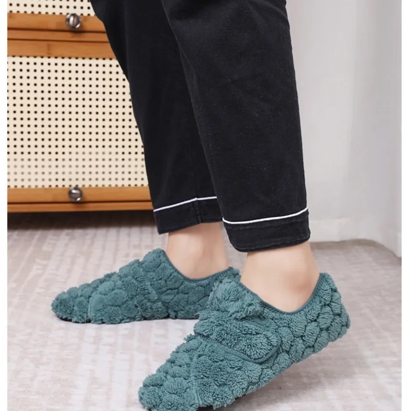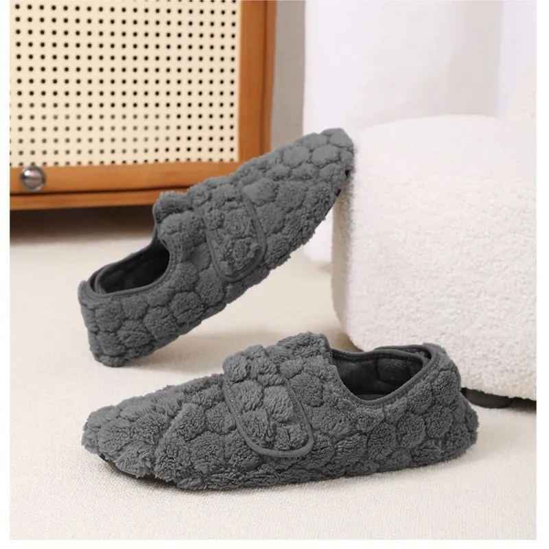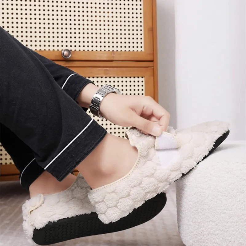 Dank des praktischen Klettverschlusses lassen sich die Hausschuhe bequem an- und ausziehen und passen sich perfekt deiner Fußform an – ideal für gemütliche Stunden zu Hause an kalten Tagen.